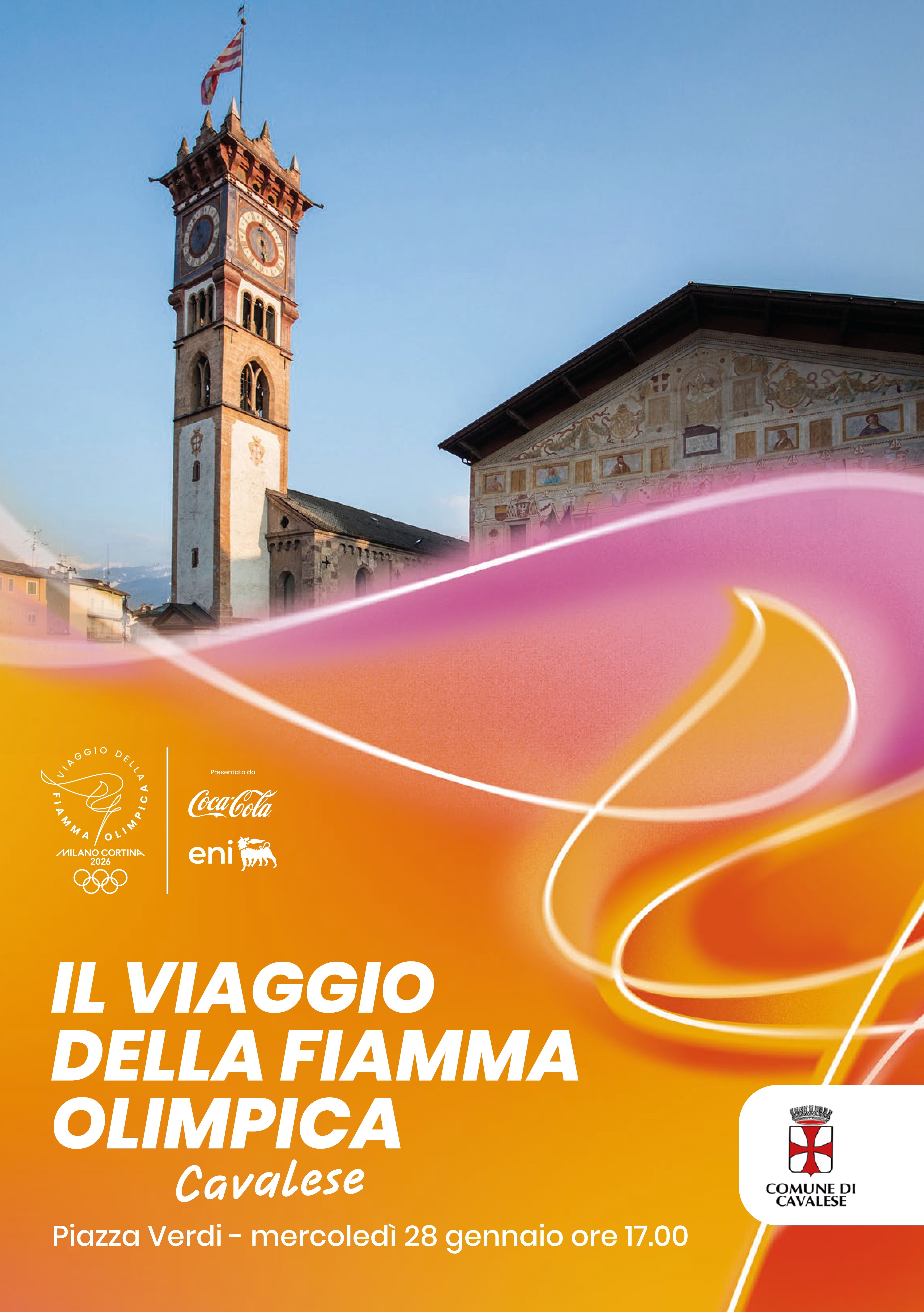 Documenti File allegati Comunicato stampa Fiamma Olimpica (File pdf 16,73 kB) Percorso Fiamma Olimpica Cavalese 28 gennaio 2026 (File image/jpeg 796,97 kB) Percorso Fiamma Olimpica Masi 28 gennaio 2026 (File image/jpeg 191,28 kB) Poster con foto passaggio fiamma olimpica (File image/jpeg 1,48 MB)