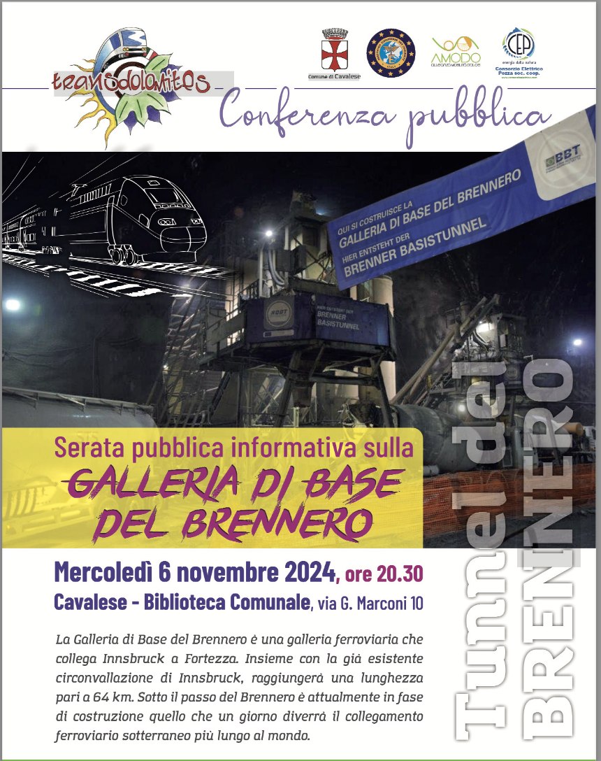 "La Galleria di base della Ferrovia del Brennero. Perché parlarne in Val di Fiemme?" - Massimo Girardi (Transdolomites); e Società BBT.