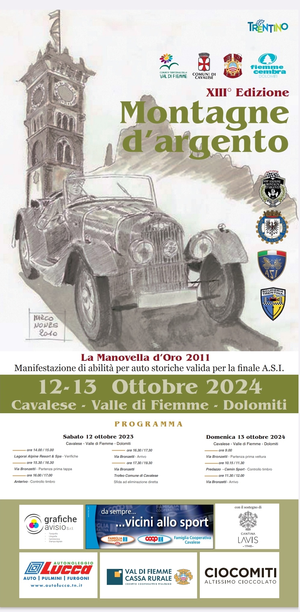 La manifestazione è la quinta ed ultima del TROFEO NORDEST Regolarità Autostoriche e sarà decisiva per definire la classifica dello stesso. Grazie al patrocinio del Comune di Cavalese e dell’Azienda Turismo della Valle di Fiemme e col sostegno di alcune realtà economiche della zona vi proponiamo un programma interessante sia per gli appassionati del cronometro (una sessantina di prove di precisione con strumentazione libera) sia per chi apprezza i panorami e l’ospitalità che contraddistinguono da sempre le nostre gare.