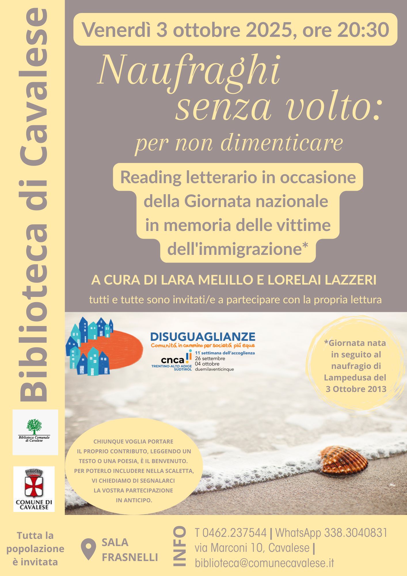 La biblioteca partecipa alla Settimana dell'Accoglienza promossa da CNCA Trentino Alto Adige con un reading letterario aperto alla partecipazione di tutti e tutte: a chi vuole portare il proprio contributo con una lettura personale e a chi vuole semplicemente ascoltare.